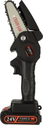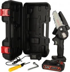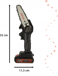 Przenośna akumulatorowa mini piła łańcuchowa, która jest doskonałym pomocnikiem dla każdego ogrodnika lub majsterkowicza. Dzięki swojej niskiej wadze i kompaktowym wymiarom, łatwo się obsługuje i umożliwia efektywną pracę nawet w trudno dostępnych miejscach.