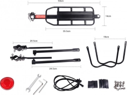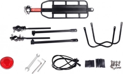 Montaż na sztycy jest szybki i prosty – bez konieczności użycia specjalistycznych narzędzi. Bagażnik jest uniwersalny dla sztyc o średnicy 27,2–31,8 mm i dzięki stabilnej platformie pewnie utrzymuje ładunek na miejscu. W zestawie znajduje się tylny odblask dla lepszej widoczności, ewentualnie możliwość zamocowania własnego światła.