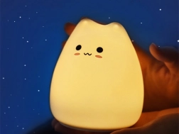 Ta silikonowa lampka LED w kształcie kotka jest idealna do pokoju dziecięcego. Jest przyjemna w dotyku, odporna na pękanie i rozerwanie, a dzięki zdejmowanej osłonie łatwo ją czyścić. Dzieciom, które boją się ciemności, zapewni delikatne, kojące światło bez ostrych krawędzi.
