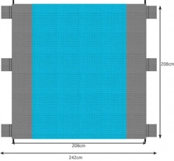 Przemyślane detale zapewnią komfort wszędzie: 6 praktycznych kieszeni wypełnisz piaskiem jako obciążenie, oczka w narożnikach ze śledziami utrzymają matę na miejscu nawet przy wietrze, a lekki pokrowiec podróżny ze ściągaczem ułatwi przenoszenie.