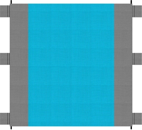 Sześć kieszeni wypełnisz piaskiem, a narożne oczka zakotwisz dołączonymi śledziami – mata pozostanie stabilnie na miejscu nawet przy podmuchach wiatru.