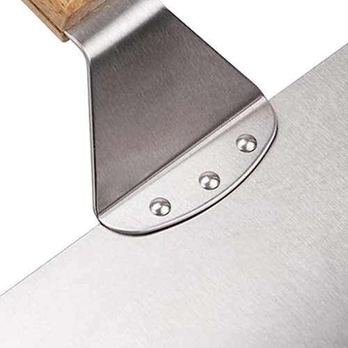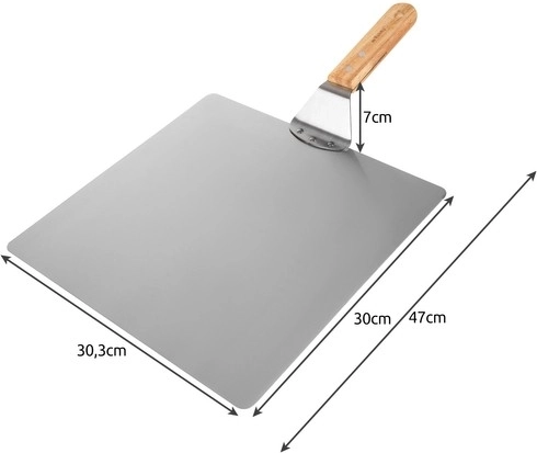 SPECYFIKACJA - materiał: stal nierdzewna / drewno; kolor: srebrny / brązowy; wymiary łopatki: 30,3 x 30 cm; wymiary całkowite: 30,3 x 47 x 7 cm; waga: 688 g; waga w opakowaniu: 984 g.