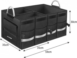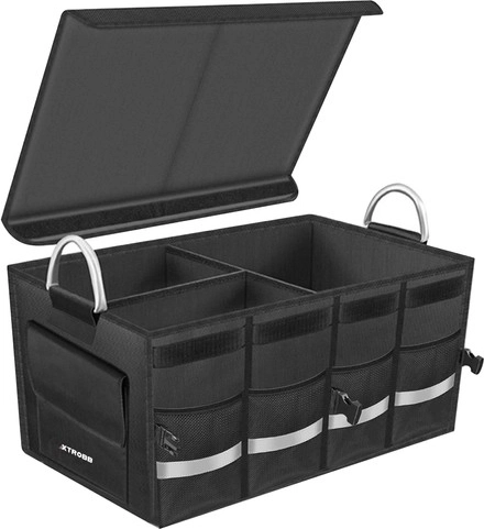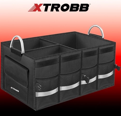 Duży, wzmocniony organizer do bagażnika XTROBB pomaga bezpiecznie utrzymać ładunek na miejscu i mieć wszystko pod ręką. Główną komorę można podzielić na trzy części, dzięki czemu narzędzia, kosmetyki samochodowe, kable i drobiazgi pozostaną przejrzyście uporządkowane i nie będą się przemieszczać podczas jazdy. Zamykane wieko na rzep chroni zawartość przed kurzem i zapewnia schludny wygląd bagażnika.