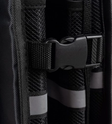 Wytrzymałe metalowe uchwyty zamieniają organizer w praktyczną torbę. Bez przepakowywania wyjmiesz wszystko naraz i wygodnie przeniesiesz, a elementy odblaskowe zwiększają bezpieczeństwo.