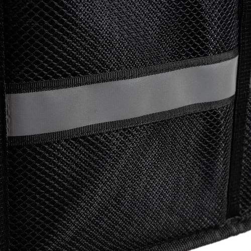 Wysokiej jakości materiały i przemyślane detale gwarantują długą żywotność. Wytrzymała tkanina Oxford 600, wzmocnienia z MDF oraz metalowe uchwyty poradzą sobie z codziennym użytkowaniem. Cztery przednie kieszenie z siatki i boczna kieszeń na rzep pomieszczą drobiazgi, a elementy odblaskowe zwiększają widoczność. Po złożeniu zajmuje minimum miejsca – idealny do każdego auta, SUV-a i dostawczaka.