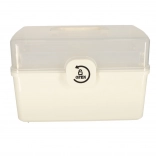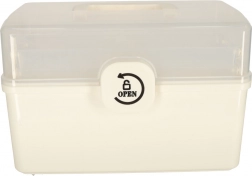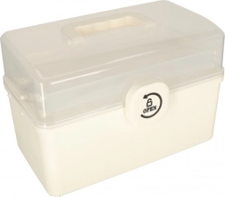 Zamek bezpieczeństwa chroni leki przed dostępem dzieci. Organizator nadaje się również do przechowywania innych drobiazgów, takich jak np. przybory do szycia.