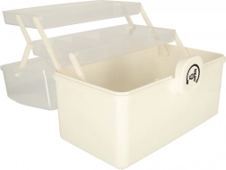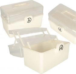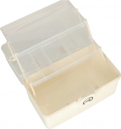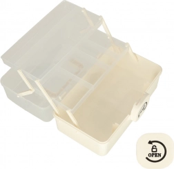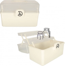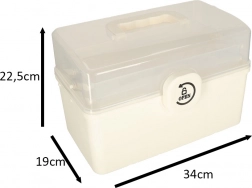 Przezroczysta pokrywa pozwala szybko znaleźć wszystko, czego potrzebujesz, bez potrzeby otwierania organizatora. Praktyczna rączka umożliwia łatwe przenoszenie zarówno w domu, jak i na wyjazdach. Wnętrze wyposażone jest w regulowane przegrody dla lepszej organizacji.