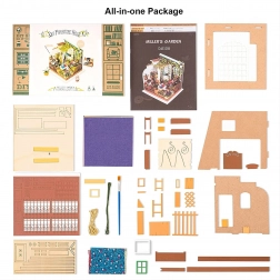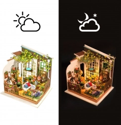 Ta dopracowana miniatura DIY zamieni Twój wolny czas w przyjemne, twórcze doświadczenie. Zestaw zawiera wstępnie wycięte elementy ze sklejki, papierowe nadruki, elementy tekstylne i metalowe, farby oraz klej. Dzięki oświetleniu LED wszystkie detale pięknie się wyróżnią, a gotowy model stanie się stylową dekoracją na półkę lub do biura.