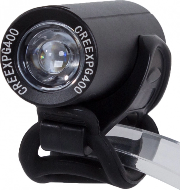 Bezpieczniejsza jazda po zmroku i w deszczu dzięki kompaktowej przedniej lampce z aluminium lotniczego z LED CREE XPG400 i strumieniem światła 350 lm. Oferuje 4 tryby świecenia (100 %, 75 %, 50 %, stroboskop), wodoodporność IPX6, ładowanie przez USB oraz gumowany włącznik. Łatwy montaż na kierownicy za pomocą dołączonego uchwytu.