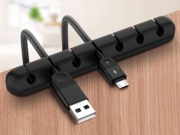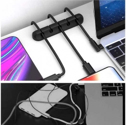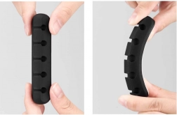 Praktyczny organizer kabli z pięcioma rowkami utrzymuje kable USB, ładowania i inne cienkie przewody zawsze pod ręką i zapobiega ich spadaniu za krawędź biurka. Dzięki elastycznemu materiałowi pewnie obejmuje kable, a jednocześnie pozwala na ich szybkie wyjęcie, gdy trzeba je podłączyć.