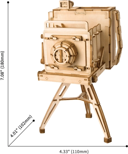 Drewniane 3D puzzle Aparat fotograficzny historyczny przeniesie cię w przeszłość, podczas gdy będziesz składać szczegółowy model zabytkowej kamery. Wycinane laserem dla precyzji i bez potrzeby użycia kleju stanie się relaksującą czynnością dla każdego.