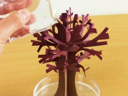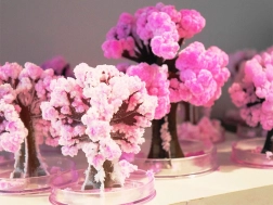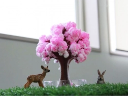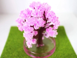 Po podlaniu w ciągu kilku godzin tworzą się delikatne różowe kryształy, które naśladują rozkwitłą sakurę i zmieniają proste drzewko w efektowną dekorację.
