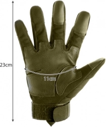 Rękawice taktyczne Trizand w kolorze khaki są zaprojektowane dla maksymalnego komfortu i funkcjonalności. Dzięki kompatybilności z ekranami dotykowymi możesz obsługiwać swój smartfon bez zdejmowania rękawic. Wewnętrzne strony rękawic są wzmocnione i zapewniają wyższą ochronę w trudnych warunkach.