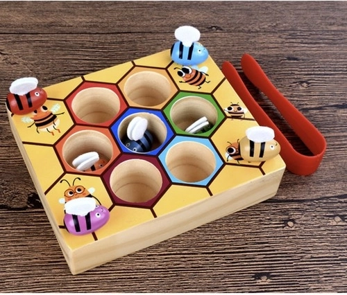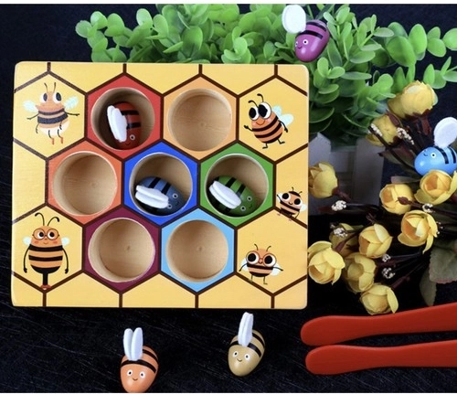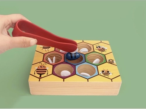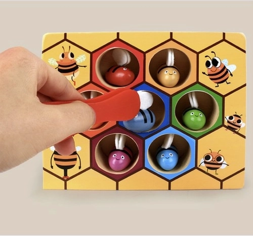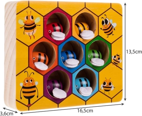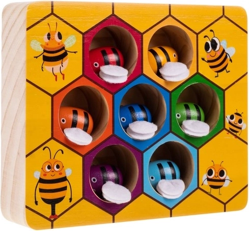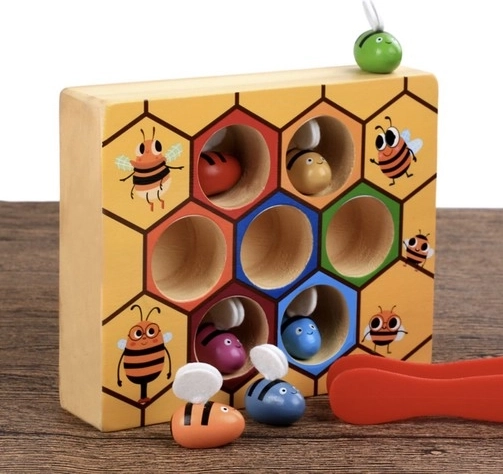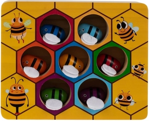 Każda pszczółka ma swój kolor i miejsce w plastrze. Podczas zabawy dzieci w naturalny sposób ćwiczą rozpoznawanie kolorów, myślenie logiczne oraz percepcję przestrzenną.