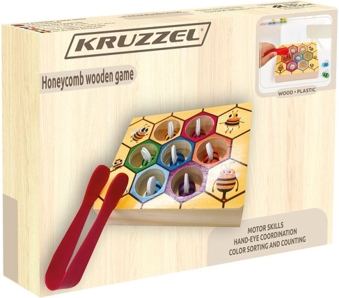Odkryj sprytną i zabawną grę dla najmłodszych: drewniany plaster miodu KRUZZEL z pęsetą i kolorowymi pszczółkami. Dzieci łapią pszczółki i wkładają je do odpowiednich sześciokątów, ćwicząc motorykę małą, koordynację oko–ręka oraz rozpoznawanie kolorów. Bezpieczne drewniane wykonanie i kompaktowe wymiary są idealne do domu i w podróż.