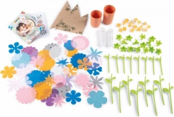 Maszyna do wytwarzania kwiatów z 104 akcesoriami zapewnia kreatywną zabawę i bogate wyposażenie. Zawiera naklejki do dekoracji i przejrzystą instrukcję z inspiracjami. Kwiaty można tworzyć z materiałowych płatków, które są wstępnie perforowane dla łatwości małego florysty.