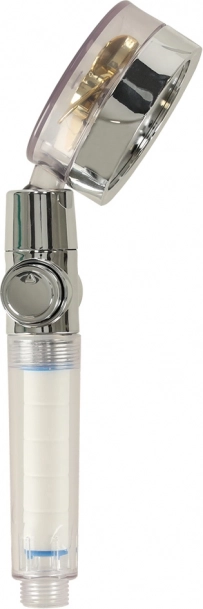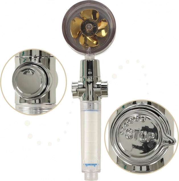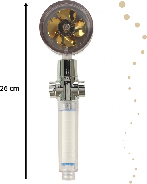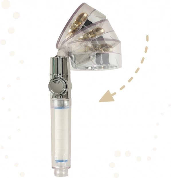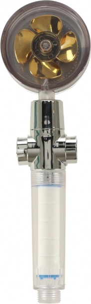 Słuchawka prysznicowa ze złotą turbiną to idealne rozwiązanie dla każdej nowoczesnej łazienki. Dzięki dużej liczbie małych otworów i wbudowanej turbinie poprawia ciśnienie wody i jednocześnie oszczędza zużycie wody i koszty rachunków. Wewnętrzny filtr pomaga eliminować problemy z twardą wodą, co jest korzystne zarówno dla włosów, jak i skóry.