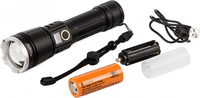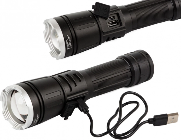 Odkryj zalety tej wysokiej jakości latarki wykonanej z lotniczego aluminium, oferującej powierzchnię antypoślizgową. Wyposażona w funkcję powerbanku, dzięki czemu w razie potrzeby naładuje Twoje urządzenia mobilne. Dzięki wydajnemu zoomowi, który pozwala uzyskać wąską wiązkę o zasięgu do 1000 metrów, stanowi idealne narzędzie do oświetlania dużych przestrzeni.