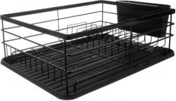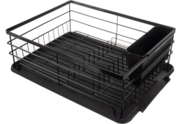 Stylowa i praktyczna suszarka do naczyń Ruhhy w eleganckim czarnym kolorze doskonale pasuje do nowoczesnych kuchni w loftowym stylu. Konstrukcja ze stali węglowej jest solidna i odporna na wilgoć oraz uszkodzenia, a plastikowe dodatki z PP i żywicy ułatwiają czyszczenie i codzienne użytkowanie.
