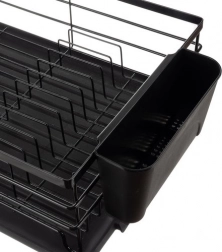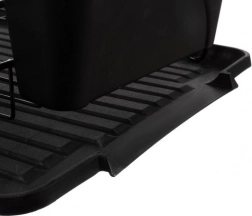 Przemyślana taca ociekowa z bocznym odpływem kieruje wodę bezpośrednio do zlewu, dzięki czemu na blacie nie pozostają kałuże. Wyjmowany koszyk na sztućce można zawiesić na bocznych prętach według potrzeb, aby suszenie sztućców było wygodne i higieniczne. Praktyczny podział pomieści i uporządkuje talerze, miski i kubki.