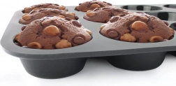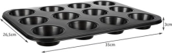 Forma ma 12 otworów o średnicy 6,7 cm, co umożliwia równomierne nagrzewanie i łatwe wyjmowanie wypieków. Jest wykonana z wysokiej jakości teflonu, który jest trwały i łatwy do czyszczenia.