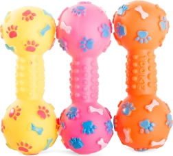 Przedstawiamy piszczącą zabawkę do gryzienia w kształcie hantla, która stanie się ulubionym elementem zabawy Twojego pupila. Ta trwała i wytrzymała zabawka jest idealna dla psów, kotów i innych zwierząt domowych, które potrzebują czegoś do zabawy lub gryzienia, gdy zostają same w domu.