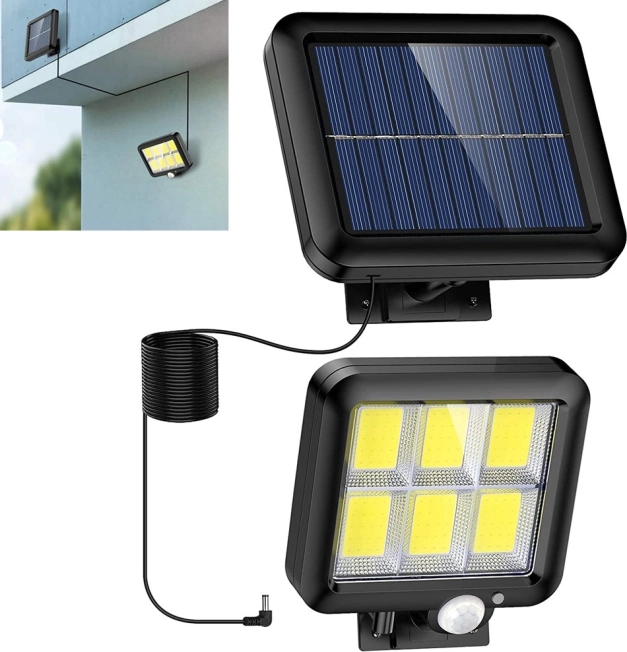 Lampa panelowa solarna z 120 diodami LED oferuje wysoką wydajność świetlną i oszczędność energii dzięki zasilaniu solarnemu. Z funkcjami jak czujnik ruchu i odporność na warunki atmosferyczne jest idealna do użytku zewnętrznego.