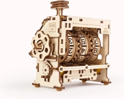 Odkryj sprytne drewniane mechaniczne puzzle Ugears – klikany licznik o zakresie 0–999, który w przystępny sposób uczy zasad mechaniki. Odpowiedni dla dzieci i dorosłych, niski poziom trudności, 157 elementów, certyfikacja STEM.org oraz wsparcie rozszerzonej rzeczywistości w aplikacji UGEARS.