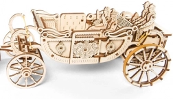 Zbuduj ikoniczny model inspirowany brytyjskim „State Landau” – mechaniczny drewniany powóz z czterokonnym zaprzęgiem, który po naciągnięciu przejedzie aż 4 metry. Zestaw zawiera 290 precyzyjnie wycinanych elementów, otwierane drzwi, wymienne figurki oraz realistyczne zawieszenie powozu dla płynnego ruchu. Idealny dla fanów marki UGEARS, modelarstwa i designerskich dekoracji.