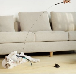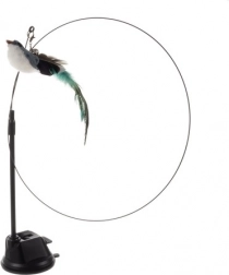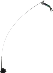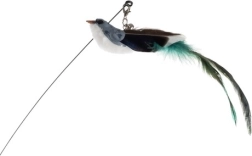 Długa, elastyczna wędka z atrakcyjnymi elementami na końcu przyciąga uwagę kota i zachęca go do skoków i łapania. Ptaszek ozdobiony długimi piórami i delikatnym dzwoneczkiem zwiększa atrakcyjność zabawy.