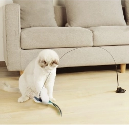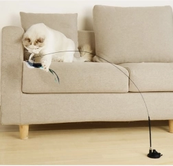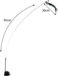 Mocna przyssawka pozwala na bezpieczne przymocowanie zabawki do gładkich powierzchni, takich jak podłogi, okna czy ściany, zapewniając niezliczone możliwości zróżnicowanej zabawy. Wędkę można także wyjąć z podstawy i bawić się z kotem bezpośrednio.