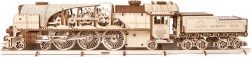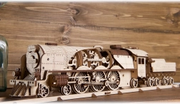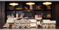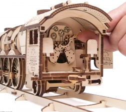 UGEARS V-Express to wyjątkowy drewniany zestaw dla wymagających, łączący urok klasycznej kolei ze sprytną mechaniką. Odsłonięty „płaszcz” lokomotywy pozwala śledzić pracę przekładni, układu kół zębatych i mechanizmu korbowego w akcji. Dzięki napędowi naciągowemu model naprawdę rusza, oferując realistyczne wrażenia z jazdy, w tym bieg jałowy i wsteczny.