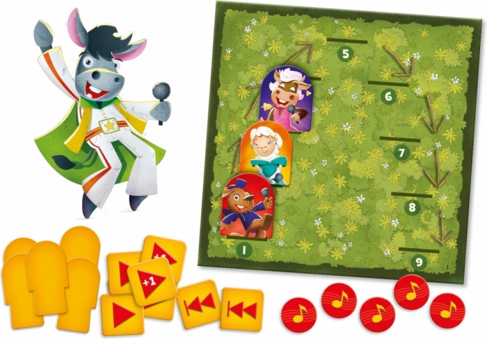 ANI BEE, ANI MEE to zabawna kooperacyjna gra pamięciowa. Występujecie w niej jako zespół, w którym wszyscy mają ten sam cel: jak najlepiej zaśpiewać na wiejskim festynie! Waszym zadaniem jest odtworzyć 9 zwierzęcych dźwięków w kolejności, w jakiej pojawiają się na scenie. Musicie zdążyć, zanim wyczerpią się punkty melodii. Przygotujcie się na odgrywanie dźwięków, ale uważajcie, aby nie popełnić błędu.