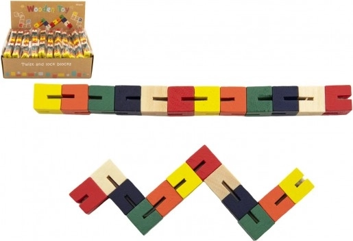 Klasyczna drewniana układanka w kształcie węża, idealna do rozwoju małej motoryki u dzieci. Możliwość układania w różne kształty przez obracanie elementów.