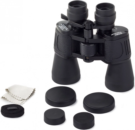 Na dłuższe obserwacje lornetkę można zamocować na statywie dzięki zintegrowanemu gwintowi. Lornetka jest dostarczana z ochronnymi osłonami na okulary i obiektywy, ściereczką czyszczącą oraz solidnym pokrowcem z paskiem na ramię dla łatwego przenoszenia.