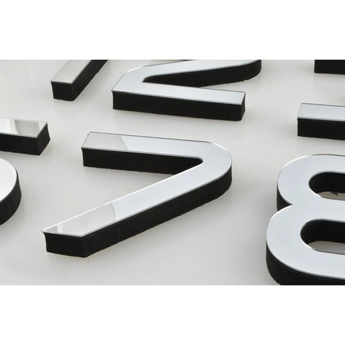 Błyszczące srebrne nakładki na cyfrach tworzą nowoczesny efekt 3D, który wyróżnia się na każdej ścianie i optycznie rozjaśnia wnętrze.