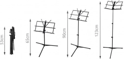 Ten pomalowany metalowy stojak na nuty jest wyposażony w trójnożną podstawkę i regulowaną wysokość, co umożliwia jego użytkowanie na stojąco i siedząco. Stojak można nawet umieścić na stole przy ustawieniu najmniejszej wysokości. Składany pulpit łatwo dostosowuje się do Twoich potrzeb, zaś regulowany kąt nachylenia zapobiega zamykaniu się nut. Odpowiedni zarówno dla profesjonalistów, jak i amatorów.