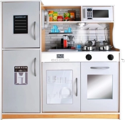 Podaruj dzieciom własną nowoczesną kuchnię z mnóstwem realistycznych elementów. Podświetlenie LED można umieścić pod szafką, w szafce lub w „piekarniku”, tworząc autentyczną atmosferę. Podczas obracania pokręteł palników słychać charakterystyczne „klik”, co nadaje zabawie nowy wymiar.