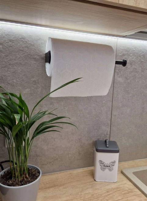 Zminimalizuj bałagan na kuchennym blacie dzięki czarnemu uchwytowi na ręczniki papierowe. Jego mechanizm obrotowy zapewni, że ręczniki będą zawsze pod ręką. Blokada obrotowa zapobiega samoistnemu obracaniu się rolki, co pozwala na łatwe zwolnienie jednego kawałka. Uchwyt można zamontować na ścianie lub szafce, poziomo lub pionowo, przy pomocy śrub albo taśmy 3M.