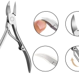 Wytrzymałe cążki ze stali nierdzewnej z wygodnym uchwytem ułatwiają bezpieczne i precyzyjne skracanie paznokci bez strzępienia.