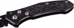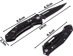 Ten taktyczny składany nóż to idealny towarzysz na kemping, wędrówki, obozy oraz do codziennego noszenia. Wytrzymałe stalowe ostrze zapewnia pewne cięcie, a blokada ostrza zwiększa bezpieczeństwo podczas przenoszenia i użytkowania. Zdobiona rękojeść nie tylko świetnie wygląda, ale też doskonale leży w dłoni.