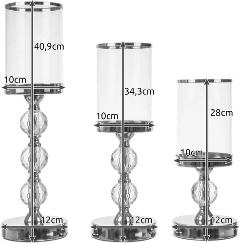 Świeczniki o wysokościach 28 cm, 34,3 cm i 40,9 cm pozwalają na różne aranżacje i efektowne kompozycje.