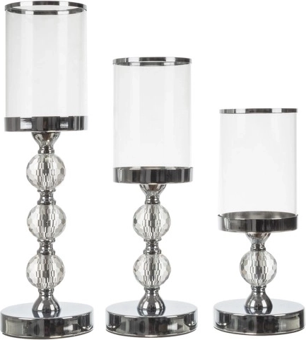 Udekoruj swój dom eleganckim zestawem 3 świeczników Glamour. Każdy świecznik powstał z połączenia metalu i szkła, co gwarantuje wysoką jakość i walory estetyczne.