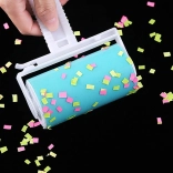 Praktyczny żelowy wałek do usuwania sierści i zabrudzeń z ubrań i powierzchni, łatwy w użyciu i wielokrotnego użytku.