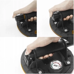 Dzięki przemysłowej przyssawce BIGSTREN z mechanizmem podciśnieniowym i manometrem możesz łatwo i bezpiecznie manipulować ciężkimi i delikatnymi przedmiotami. Przyssawka obsługuje obciążenie do 200 kg, co predestynuje ją do szerokiego zastosowania zarówno w domu, jak i w sektorze komercyjnym.