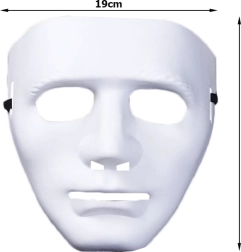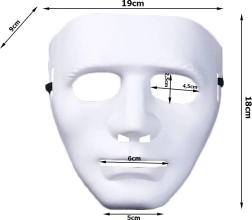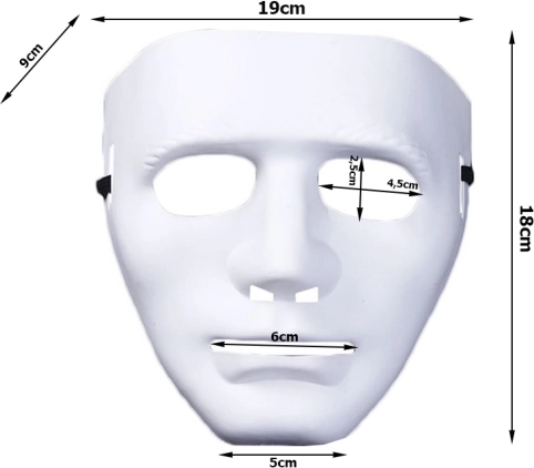 Dzięki kompaktowym wymiarom 19 × 18 × 9 cm maska jest łatwa do przenoszenia i gotowa uzupełnić Twój halloweenowy czy horrorowy kostium. Minimalistyczna biała barwa ułatwia dopasowanie do różnych dodatków i ubrań.