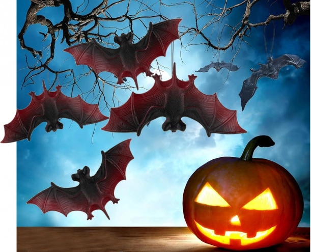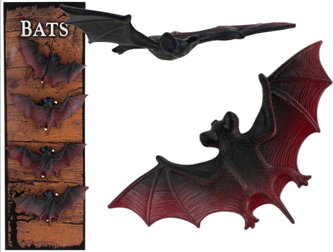 Stwórz straszliwy halloweenowy nastrój w mgnieniu oka! Ten zestaw 4 realistycznych nietoperzy z wytrzymałego plastiku/gumy jest idealny do dekoracji domu, ogrodu i imprez. Wystarczy je zawiesić na gałęzi, pajęczynie lub półce, aby uzyskać efektowne dekoracje z wyrazistymi czarno‑czerwonymi skrzydłami.