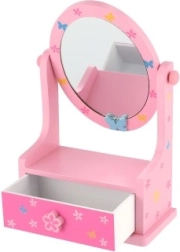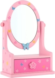 Ta drewniana szkatułka na biżuterię w pastelowych kolorach z regulowanym lustrem to doskonały wybór dla małych dam, które chcą mieć swoje biżuterie i cennosti starannie przechowywane.