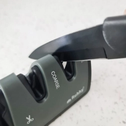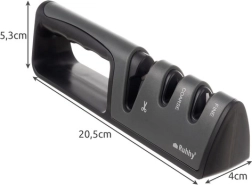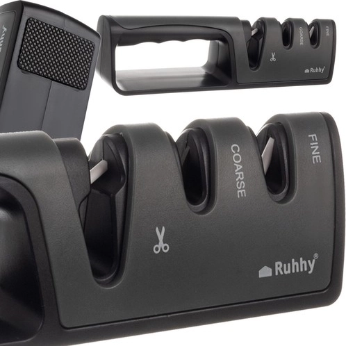 Praktyczna 3‑fazowa ostrzałka RUHHY przywraca ostrość Twoim kuchennym nożom i nożyczkom w kilku pociągnięciach. Pierwszy slot przeznaczony jest do nożyczek, drugi do zgrubnego przeszlifowania uszkodzonej krawędzi, a trzeci do delikatnego doostrzenia i wygładzenia. Stabilna konstrukcja z antypoślizgowymi nóżkami oraz ergonomicznym uchwytem zapewnia wygodne i bezpieczne użytkowanie.