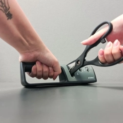 Oddzielny slot do nożyczek oraz dwa stopnie do noży: zgrubne wyrównanie krawędzi i delikatne doostrzenie dla maksymalnej precyzji cięcia.